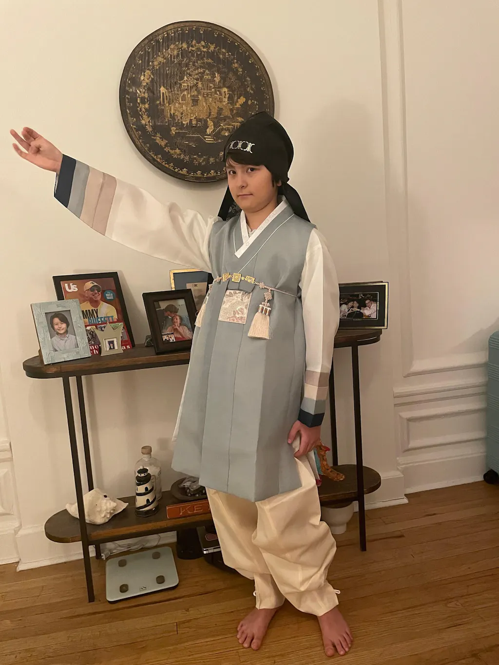 - Includes: Jeogori (inner top), vest, and beige pants.
