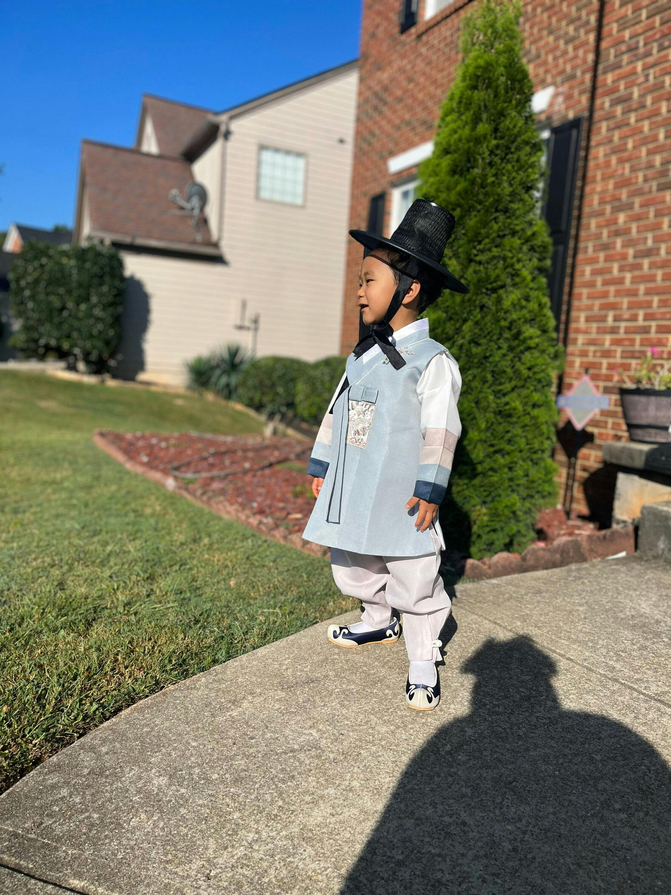 Dress your boy in the timeless style of our Jeongwoo D.Sky Stripe Boy Hanbok. Perfect for Dol, Baek-il, and traditional celebrations, this hanbok brings together cultural heritage and a modern touch.