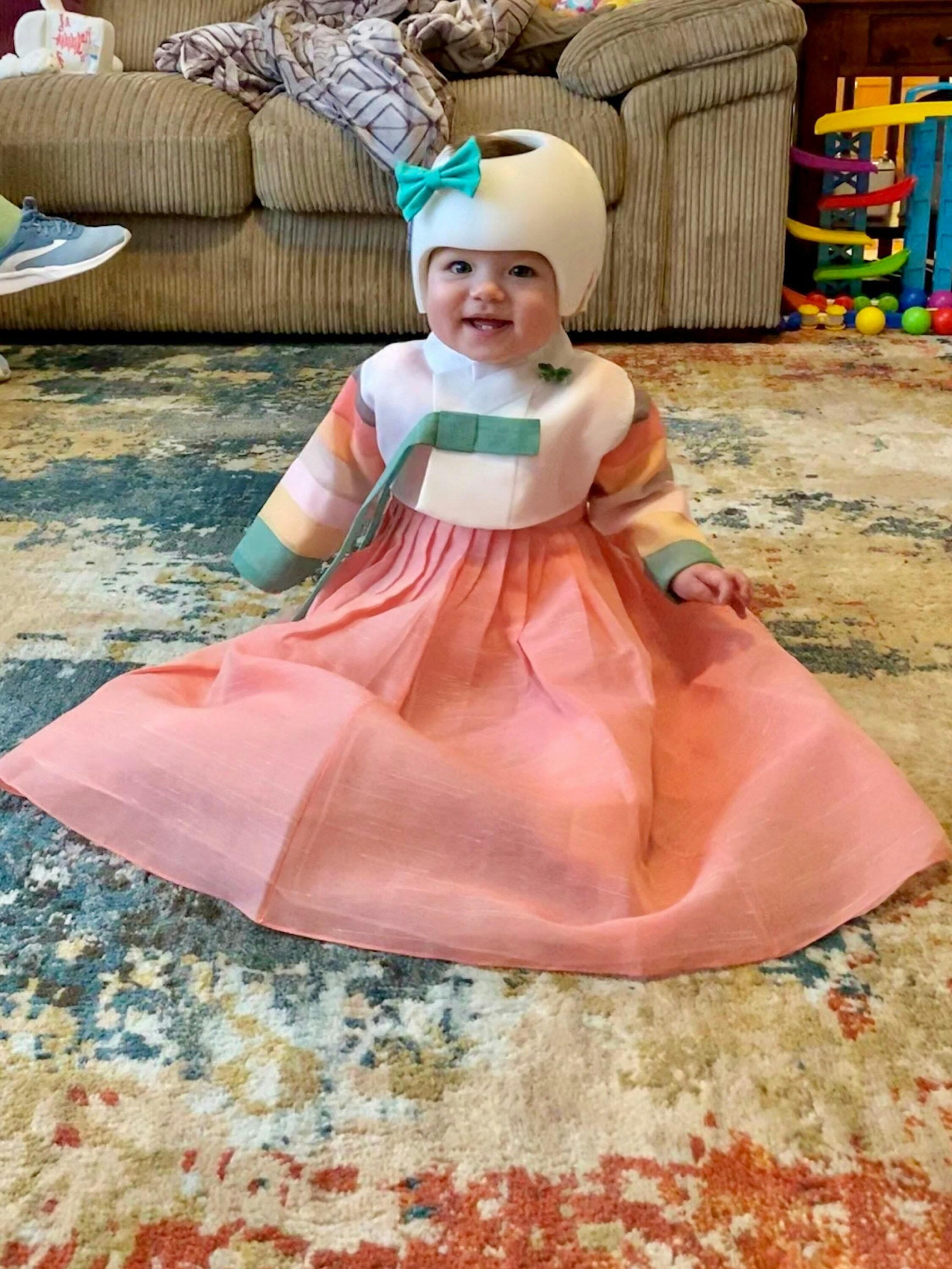 Introduce your girl to the timeless charm of traditional Korean attire with our Kahyun Peach White Jeogori Girl Hanbok. Perfect for Dol, Baek-il, and other special celebrations, this hanbok blends cultural elegance with modern comfort.