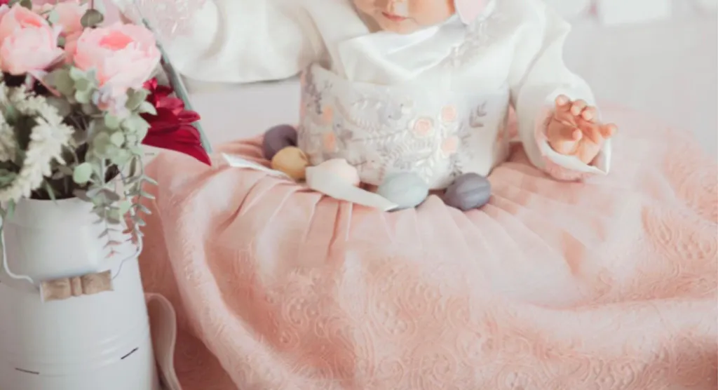 Make your baby’s Hanbok even more special with the Rose Embroidery Bell Belt. This belt features delicate rose embroidery and bell accents, adding a charming touch to Dol and special events.