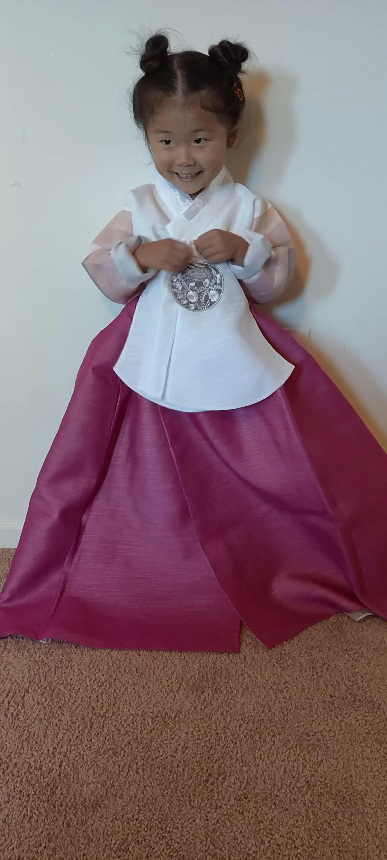 Dress your girl in the delightful Yejin White Saekdong Dangui-11 Colors Skirt Girl Hanbok. Perfect for Dol, Baek-il, and other special celebrations, this hanbok offers a vibrant blend of tradition and modern comfort.